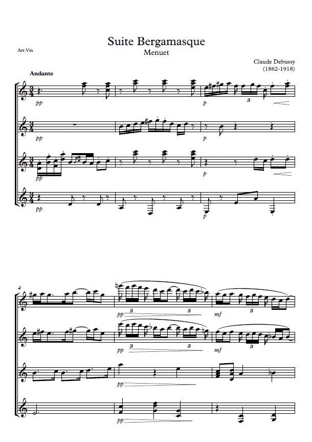 Suite bergamasque for Guitar Quartet- Claude Debussy